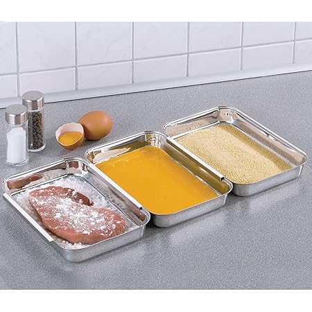 Edelstahl 18/10 zum Panieren, Marinieren, Portionieren Maße: ca. 22 x 15 x 3 cm (einzeln gemessen)