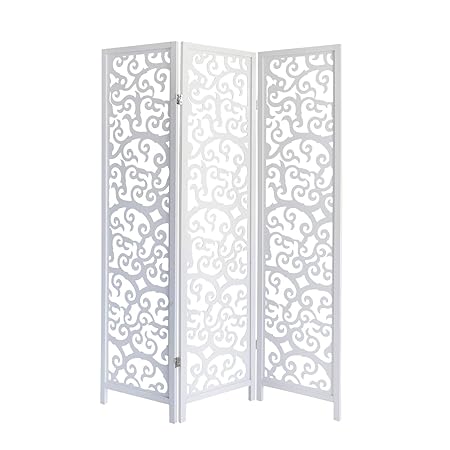 Homestyle4u 1056, Paravent Raumteiler 4 teilig, Kiefer Holz Ornamente, Weiß