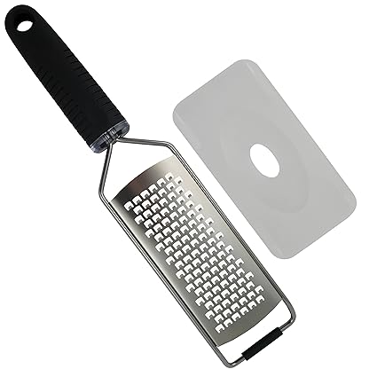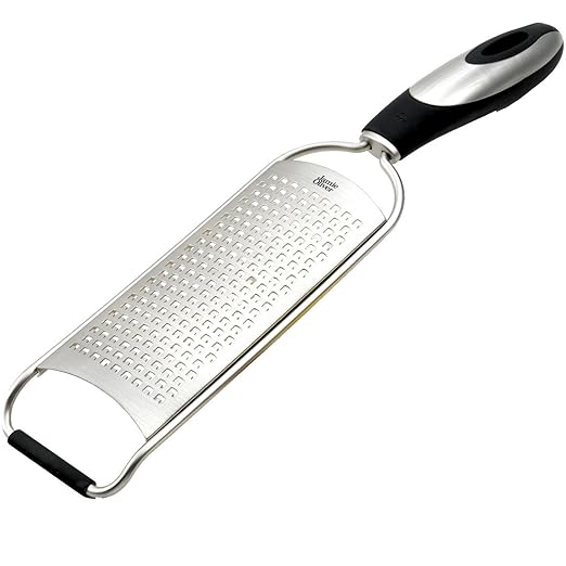 ? MULTIFUNKIONELLER ENTWURF ? Hochwertiger Zester ist einer der langlebigsten Werkzeuge in der Küche. Sie können mit ihr verschiedene Obst und Gemüse wie Zitrone, Limette, Agrumen, Parmesan, Käse, Gewürze, Musskatnuss, Zimt, Schokolade usw. Mahlen. Dabei entfernen Sie auch mit ihr die gerösteten Ränder von Keksen und Brot. Wenn Sie beim Kochen frisch gemahlenen Ingwer oder Knoblauch benötigen, können Sie das Werkzeug verwenden.