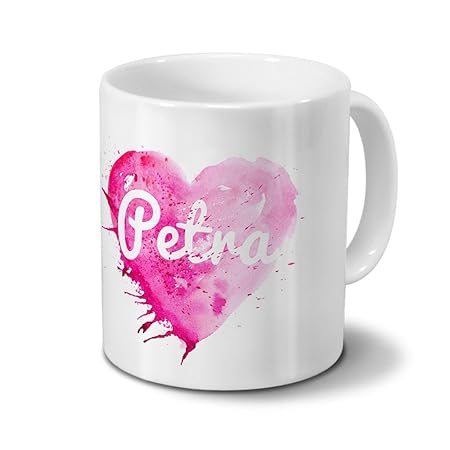 Tasse mit Namen Petra - Motiv Painted Heart - Namenstasse, Kaffeebecher, Mug, Becher, Kaffeetasse - Farbe Weiß