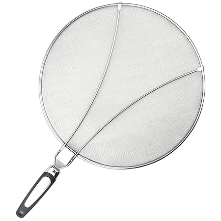 Spritzschutz enthält sprudelnde heiße Öle, köstliche Soßen, kochende heiße Flüssigkeiten und Lebensmittel-Bits in der Pfanne Hergestellt aus kommerzieller Edelstahl für Langlebigkeit mit feinmaschigem Sieb; rostet nicht; passt für Töpfe und Pfannen bis 24,5 / 29,5 / 32,5 cm Verhindert Unordnung bevor es passiert, für weniger Zeit mit der Reinigung von Herd, Arbeitsplatte und Wänden; feines Netz ermöglicht eine gute Luftzirkulation im Inneren der Pfanne Schützt nackte Haut vor Verbrennungsgefahren; langer kühl bleibender Griff hält die Hände sicher von Hitze fern Kann gut zum Dämpfen, Abtropfen und Spülen von Lebensmitteln verwendet werden; spülmaschinengeeignet für einfache Reinigung.