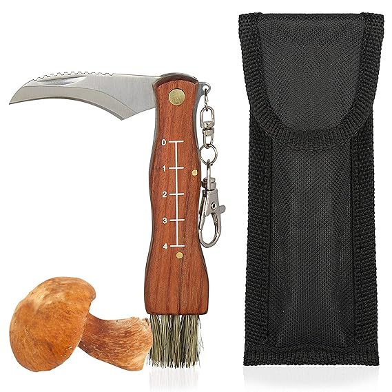 ? GPRÜFT: Unser Produkt ist von der Polizei im Sinne des Waffengesetz (WaffG) geprüft und als unbedenklich eingestuft. ? MEHRWERT: Gegenüber vergleichbarer Messer bietet unser Schwammerlmesser eine hervorragende Qualität. Ideal für Trüffel, Champignons Steinpilze ect. ? DURCHDACHT: Mit integriertem Lineal / Maßstab um den Schwammerl auszumessen. Mit Bürste aus Schweineborsten um den Pilz zu reinigen (Borsten). Mit Anhänger / Karabiner zum sicheren Transport. Auf Wunsch mit Tasche. ? NATURBELASSEN: Der Griff ist aus unbehandeltem Holz. Der Kontrast kann daher gegenüber den Produktbildern leicht abweichen (dunkler / heller) ? WERTIGE KLINGE: Die einklappbare Klinge mit geriffeltem Klingenrücken ist aus rostfreiem Stahl und arretiert in der Endposition. Die Klinge ist extra stark geschärft, um den Pilz schonend zu ernten. Sie können bei Bedarf die Klinge handelsüblichen Messerschärfern nachschleifen.