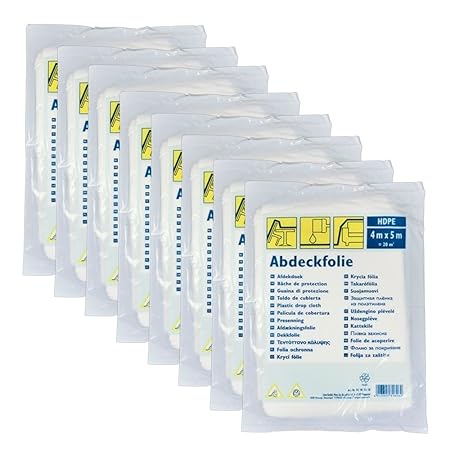 10x Abdeckfolie je 20m x 1,8m = 360m² Malerfolie Schutzfolie Renovierfolie Folie Plane Maler abdecken streichen