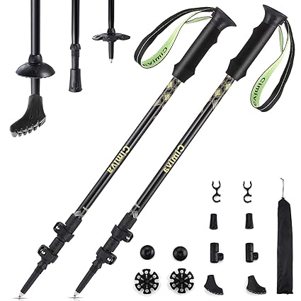 ? GELENKSCHONEND: Die Trekking-Stöcke aus 100% hochmodularem Carbon absorbieren Stöße und beugen Sportverletzungen vor. Ein zusätzliches Anti-Schock-System wird somit überflüssig. Das extrem leichte Material unterstützt ihre Bewegungsfreiheit beim Wandern auf Asphalt, Gelände oder durch Schnee und Eis ? STUFENLOS JUSTIERBAR: Schnelle Längeneinstellung durch Quick-Lock System aus Aluminium. Mithilfe aufgedruckter Zentimeter Skalierung lassen sich die Wanderstöcke individuell auf jede Länge zwischen 65 cm bis 135 cm einstellen und zuverlässig befestigen ? PREMIUM QUALITÄT: 100% hochmodulares Carbon sorgt für höchste Stabilität, gepaart mit einer federleichten Handhabung. Erfahren Sie ein optimales Schwungverhalten bei einem Rohrdurchmesser von 18 mm mit einer Hartmetall Flex Tip Spitze und nur ca. 225g Gewicht pro Stock ? ERGONOMISCHE GRIFFE: Sehr angenehmer Griff aus Kork, im Winter nicht kalt und im Sommer schweißabsorbierend. Die verstellbaren Handschlaufen mit weichem Fleece-Inlett überzeugen durch hohen Tragekomfort und Atmungsaktivität ? 100% ZUFRIEDENHEITSGARANTIE: Unser Service steht für 100% Zufriedenheit. Egal ob Ersatz, Umtausch oder Rückgabe. Wir betreuen Sie auch über die Standardfristen hinaus und stehen Ihnen als langfristiger Partner zur Seite