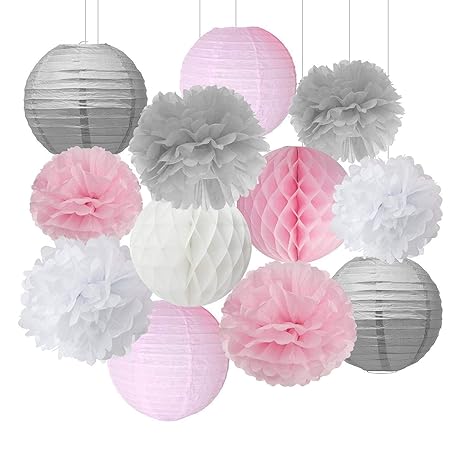 18 Stück Set Seidenpapier Pompoms Blumen und Papierlaterne Party, Geburtstag, Weihnachten Baby Duschen und Hochzeit Dekoratio