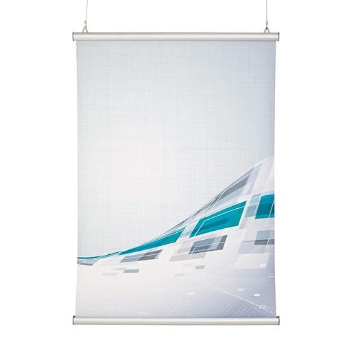 Ausführung: Plakat-Klemmleisten aus silberfarbenen Aluminium-Klemmprofilen mit Moosgummieinlage als Rutschsicherung Größe: 150,0 cm Lieferumfang: Set aus je 2x Klemmprofil + 2x Aufhängeöse (verschiebbar) und 4x Endkappe aus Kunststoff Merkmale: echte Federstahlplättchen für langanhaltende Klemmwirkung Einsatz: zum Aufhängen von Postern und Plakaten aus Papier