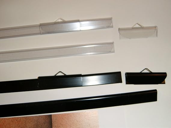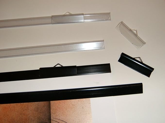 preiswerte Aufhängmöglichkeit Posterschienen variable Befestigung da Einkürzen möglich, Aufhänger verstellbar 100 cm lange schwarze Kunststoffschienen pro Paar zwei verstellbare Aufhänger