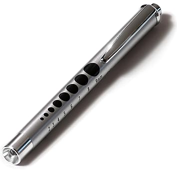 Leichter Kunststoffkörper. Mit aufgedrucktem Maßstab zur Pupillenmessung auf einen Blick. Versiegelte konzentrische Leuchte. Abmessungen in cm (L x D): 5 inches x 0,5 inches.