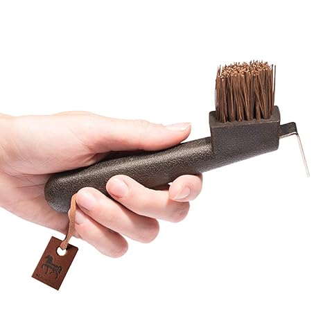 NATURBORSTEN – hochwertige, dichte und stabile Naturborsten sorgen für eine besonders gründliche und schnelle Reinigung der Hufe | Hufkratzer Pferd Braun | Pferdeputzzeug mit Naturborsten GRIFFIG – rauer Griff des Huf Auskratzer verhindert Abrutschen während dem auskratzen der Hufe | hochwertiges Putzzeug für Pferde STABIL – gründliche Reinigung durch stabilen Kratzer aus rostfreiem Edelstahl | Hufräumer mit Edelstahl BRAUN – schlichtes und zugleich elegantes Braun mit praktischem Lederhänger | Hufreiniger | braunes Pferdeputzzeug EFFIZIENT – die 2 in 1 Funktion ermöglicht schnelle Hufpflege | Hufkratzer mit Bürste | Hufauskratzer Pferde › Weitere Produktdetails