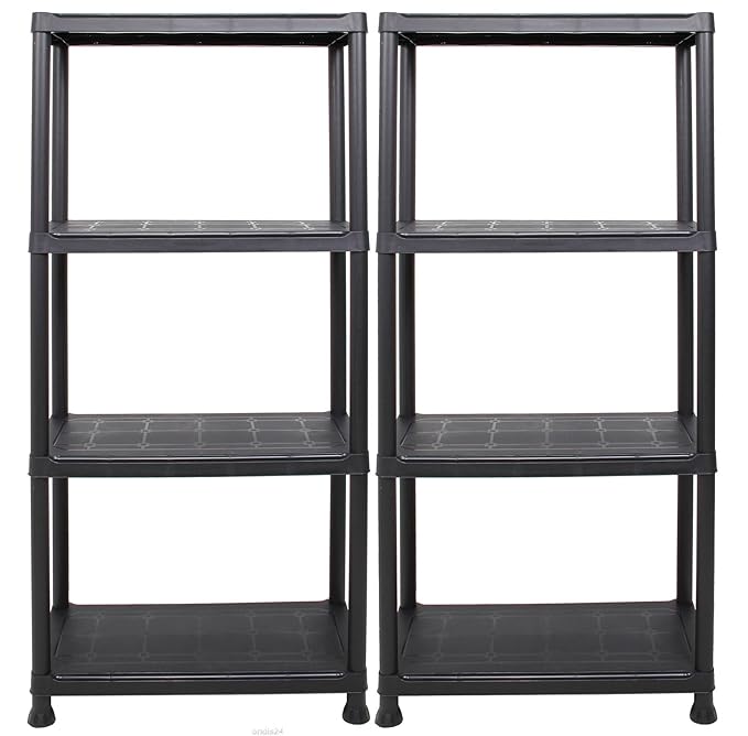 Ondis24 Steckregal 60 x 30 x 135 (H) cm, 4 Böden, Kunststoffregal, Schwerlastregal, bis zu 80 kg, Regal, Lagerregal - Doppelp