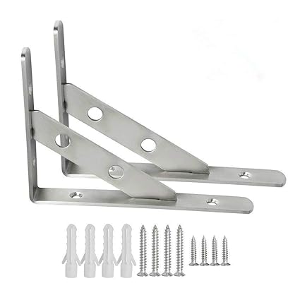 Hergestellt aus hochwertigem Edelstahl, garantiert Qualität und Langlebigkeit in feuchter Umgebung. 4mm Dicke für Bücherregal, Messestand, Gartenregal, externe Wandhalterungen etc. Schrauben zur Befestigung der Installation, Kunststoff-Anker für die Wandseite enthalten, um die Festigkeit zu erhöhen und stabil. Produkt Dimension: 150 mm x 100 mm x 24 mm (L * B * H), Mount Lochdurchmesser .: 5 mm, Dicke: 4 mm Packungsinhalt: 4x Klammern, 8x Anker und 24x Schrauben. › Weitere Produktdetails