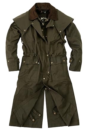 Unser Regenmantel, wie ihn nicht nur echte Stockman (australische Cowboys) tragen würden. Auch für Biker, Naturfreaks, Vampire, oder Gothic-Fans ein multifunktionelles Highlight. Das aufgesetzte Schultercape sorgt für den besonderen Touch. Absolut regendicht und mit angenehmen Baumwollstoff gefüttert.