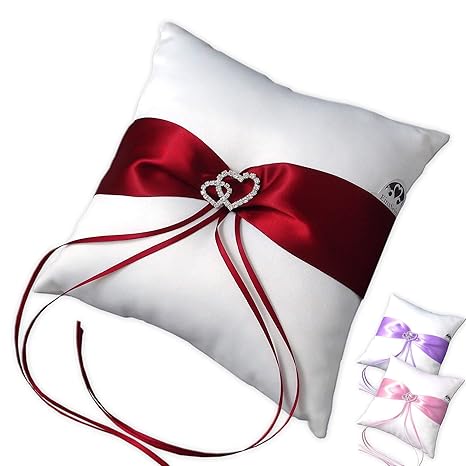 Hochzeit Ringkissen,Ehering-Kissen mit Satinband,for für Ringträger (Stickerei ringkissen)