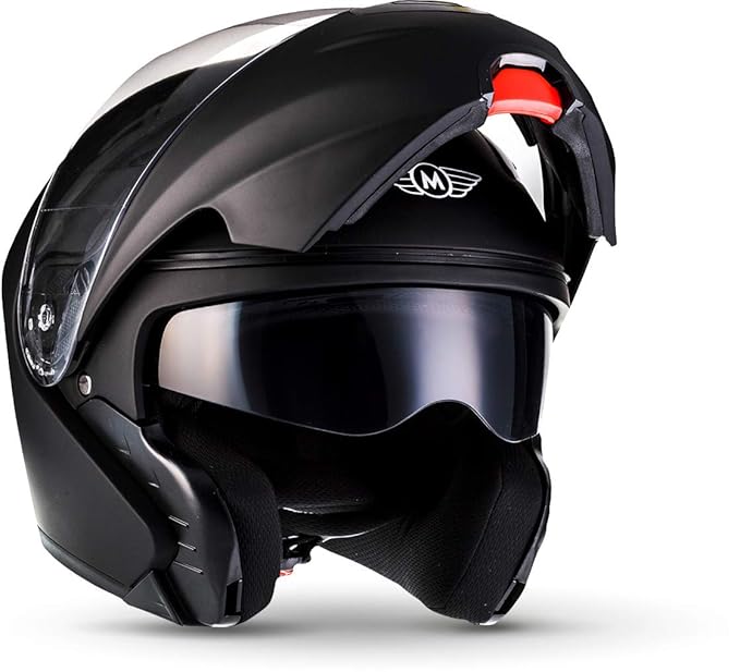 Professioneller Motorradhelm: Erfüllt und übertrifft den ECE22.05 Standard. Ansprechendes Design mit vielen extra Funktionen. Genau das, was Sie für ihr Motorrad, Enduro, Quad, Schneemobil, etc. benötigen. Für Männer und Frauen geeignet. •Empfehlen Sie eine Nummer größer zu kaufen• Hochwertige Materialien: Aerodynamische ABS-Außenschale,EPS-Innenschale, verstärkter Kinnriemen mit Schnellverschluss. Dual Visier System: Einfach zu bedienender Schiebeschalter zum schnellen ausfahren der Sonnenblende.Einfaches austauschen des Visier ohne zusätzliches Werkzeug.Aerodynamisches Design zur Lärmreduzierung des Fahrtwind.Integrierter, ausfahrbare Sonnenblende. Einfaches verstellen des Visier, Sonnenblende und Belüftungssystem mit Handschuhen.Kratzfest und UV-beständig.Behalten Sie einen klaren Überblick bei sonnigen Tagen. Belüftungssystem: Einstellbare Einlass- und Auslassöffnungen, um einen konstanten und optimale Luftzirkulation zu erzeugen für ein komfortables Fahrerlebnis mit klarer Sicht und kühlem Kopf.Einfaches verstellen des Visier, Sonnenblende und Belüftungssystem mit Handschuhen. Bequeme Innenpolsterung: Vollständig herausnehmbares und waschbares Innenfutter, um den Helm sauber,frisch und geruchsfrei zu halten. Bietet extra Raum zum Tragen eines Bluetooth Headset und Brille (nicht im Lieferumfang enthalten).