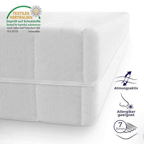 Schadstofffreie Matratze, Made in Germany, Öko-Tex Standard 100 zertifiziert, geeignet für Allergiker, verwendbar als Kindermatratze und Babymatratze