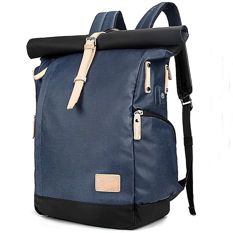 Tocode Laptop Roll Top Rucksack Canvas, Fit 16,5' Laptop Große Damen & Herren Reise Daypack mit USB-Ladegerät Port, Casual Vi