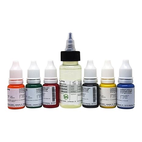 Sailor Jerry Tattoofarben Set 7 x 30ml. Made in GERMANY! Mit Zertifikat! Tätowierfarbe, Tattoofarbe Farbverdünner Tattoo Ink,
