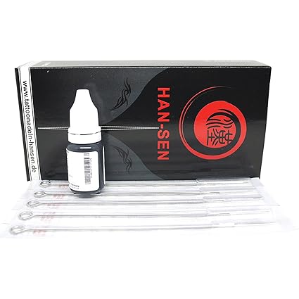 5 fertig aufgelötete Tattoonadeln 3er Rund Liner + 1 Sailor Jerry Tattoofarbe Schwarz 30 ml Die Premium Nadeln von HAN-SEN Trading & Consulting GmbH sind professionell extra poliert, ultraschallgereinigt, sterilisiert mit Ethylen-Oxid-Gas, Plasteverpackt, mit dialytischem Papier versiegelt. Die Sailor Jerry Tattoofarbe ist in Deutschland hergestellt. DC-TP GmbH hat als erste Firma in Deutschland alle Farben nach der neuen Verordnung beim Bundesamt für Verbraucherschutz und Lebensmittelsicherheit registriert. Ein Zertifikat von der Tattoofarbe wird mitgeliefert. Die Sailor Jerry Tattoofarben erfüllen die Reinheitsanforderungen der Europaratsresolution und die Anforderungen der neuen deutschen Tätowiermittel Verordnung