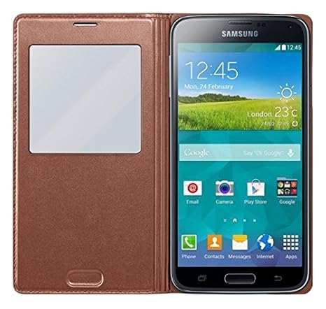 Samsung EF-CG900BDEGWW Flip Cover mit Sichtfenster in gold glänzend Galaxy S5