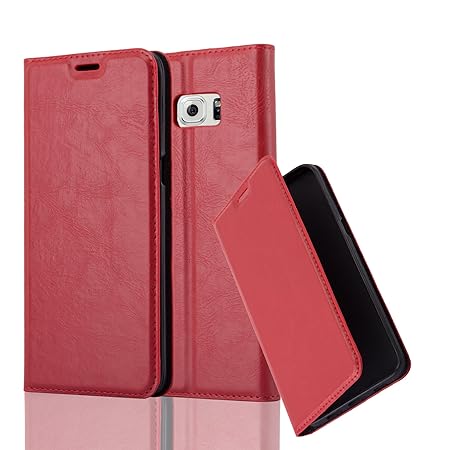 Cadorabo Hülle kompatibel mit Samsung Galaxy S6 Edge Plus Hülle in Karmin ROT Handyhülle mit Kartenfach und Standfunktion Sch
