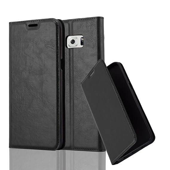 Cadorabo Hülle kompatibel mit Samsung Galaxy S6 Edge Plus Hülle in Phantom SCHWARZ Handyhülle mit Kartenfach und Standfunktio