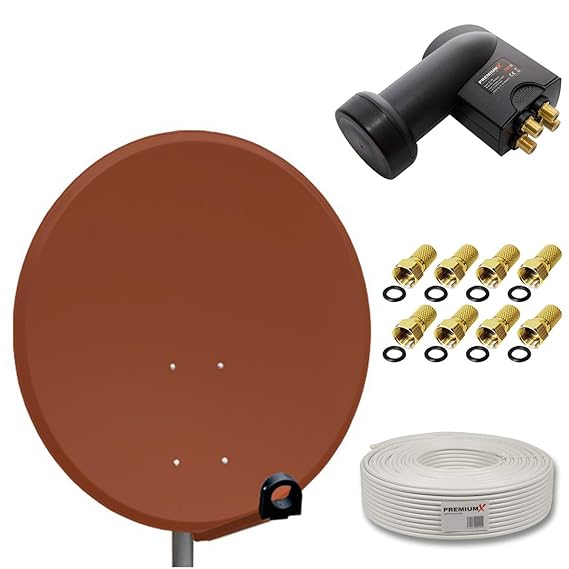 SCHWAIGER -555- Sat Anlage, Satellitenschüssel mit Quad LNB (digital) & 8 F-Steckern 7 mm, Sat Antenne aus Aluminium, Ziegelr