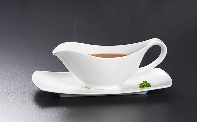 Klassische Sauciere aus brillantem Porzellan zum eleganten Servieren von Saucen zum Hauptgericht, Ideal für die Festtafel