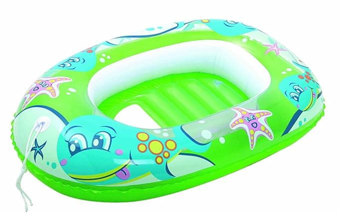 Artikelnummer: 34009 Altersempfehlung: 3-10 Jahre Größe (aufgeblasen): 124 x 74 x 25 cm; Robuste Handgriffe Aufblasbarer Boden für mehr Komfort; 2-farbig sortiert / Leider ist eine Auswahl nicht möglich Zugseil mit eingebauter Halterung; Inhalt: 1 Poolboot, ein Reparaturflicken Strapazierfähiges 0,22 mm Vinyl