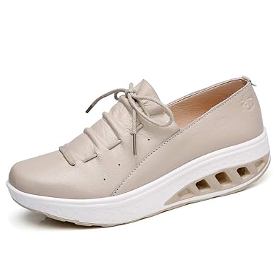 Solshine Damen Leder Plateau Loafers Slipper mit Luftpolster Slip on Halbschuhe Schlupfschuhe