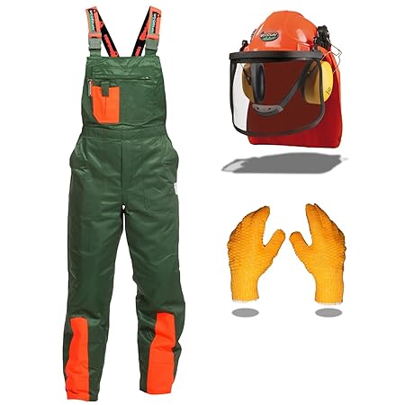 Schnittschutz Set 2 teilig Forsthelm KWF geprüfte Schnittschutzhose Schnittschutzlatzhose (58)