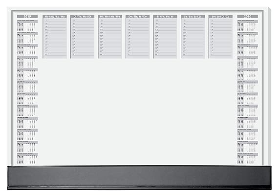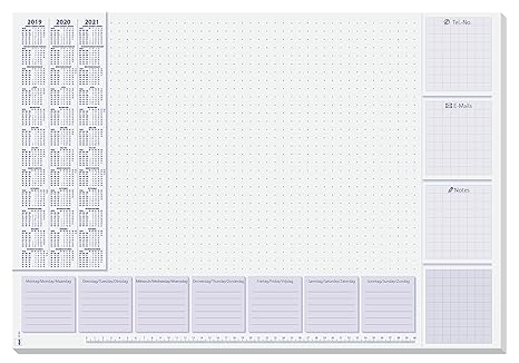 Papier-Schreibtisch-Unterlage zum Abreißen 'Office' mit aktuellem 2-Jahres-Kalendarium, übersichtliche Tages- und Wocheneinteilung - ideal fürs Büro Mit schwarzer Schutzklappe / Schutzleiste und Kantenschutz 40 Blatt hochwertiges Papier (80g/m2) im Format 59,5 x 41 cm Stabiler Rückendeckel aus Karton (600g/m2) zur sicheren Planlage Als Abreißblock mit stabiler Leimung an der Unterkante und partiell an der Oberkante - gegen Eselsohren Viersprachig: in Deutsch, Englisch, Französisch und Niederländisch › Weitere Produktdetails