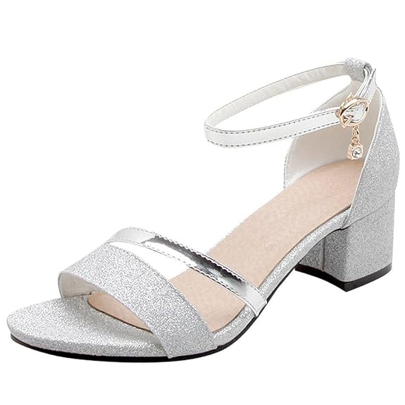 SheSole Damen Knöchel-Riemchen Sandalen Mitte Ferse Strass Riemchensandaletten Hochzeit Schuhe