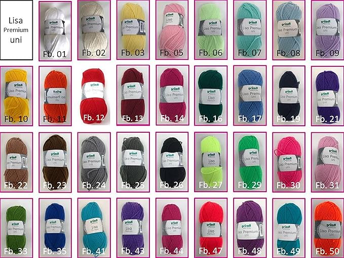 Keine Wollreste, ausschließlich hochwertige bunte Neuware in vielen Farben! Garantiert im Wollpaket enthalten: Gelb, Orange, Rot, Pink / Rosa, Lila, Blau / Türkis , Dunkelblau, Hellblau, Grün, Dunkel-grau, Schwarz und Weiß