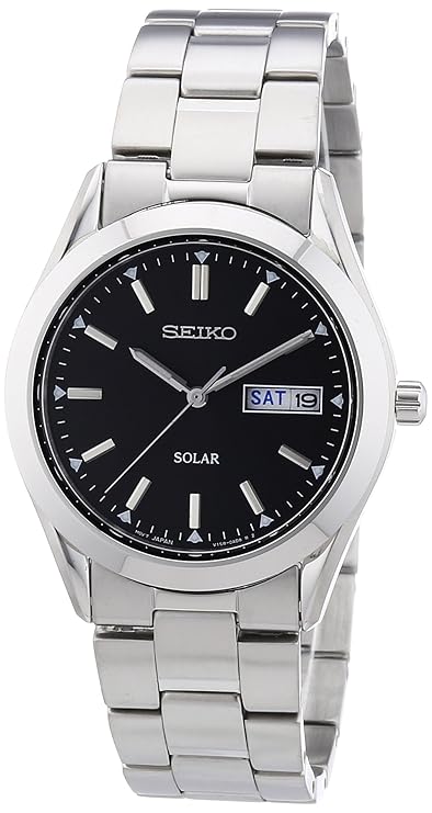 Seiko Herren Analog Solar Uhr mit massives Edelstahl Armband SNE483P1