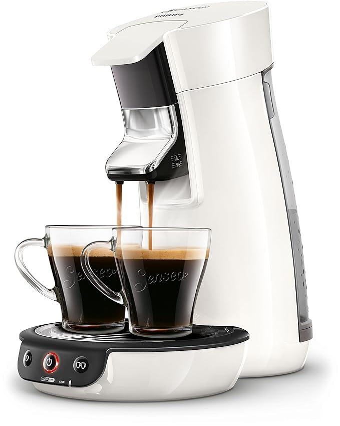 Senseo Kaffee Boost Technologie; entfaltet den vollen Geschmack des Kaffeepads Höhenverstellbarer Kaffeeauslauf aus Metall; für die Lieblingstasse Automatische Entkalkungsanzeige Leckere Crema; der Beweis für erstklassige Qualität Max. Höhe der Tasse :100 bis 120 mm Lieferumfang: Philips Senseo Viva Café Kaffeepadmaschine schwarz, Kaffeepadhalter für 1 und 2 Pads