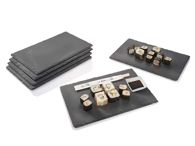 VonShef Schieferplatten 6 TLG. Set - Servierplatten Käseplatten Tapas Serviertablett | Teller aus 100% Naturschiefer | 22x16