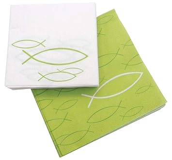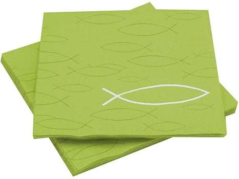 20 Servietten Fische auf Regenbogen grün als Tischdeko zur Taufe, Kommunion und Konfirmation 33x33cm
