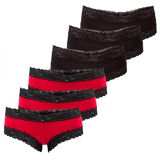 L&K-II 6er Pack Damen Hipster Hotpants Panty mit verführerischen Spitzendetails