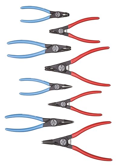 Acht gängige Sicherungsringzangen für Innen- und Außenringe