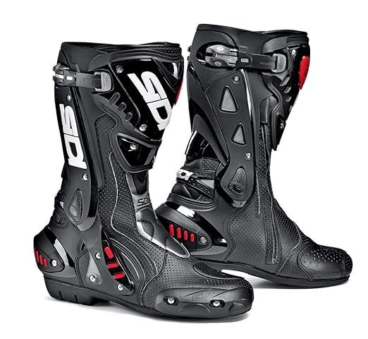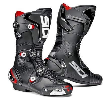 Sidi zum Erleichtern der Schließung der Reißverschluss, insbesondere im Bereich des Malleolus, hat eine elastische Einlage hinzugefügt, dass eine größere Aufweitung Bewegung ermöglicht und erleichtert l 'Betrieb Der hintere Manschette, mikroverstellbare je nach Umfang der Wade des Trägers, besteht aus Polyurethan und ist mit dem Verriegelungssystem TECNO VR vorgesehen.Der Mechanismus, durch Sidi patentiert, reguliert die arerenza mittels eines Nylon-Faden, der von zwei seitlichen Tülle gehalten, so zieht symmetrischen gleichmäßig um den Boot Kalb nahe Auf der Außenseite Unterseite des Stiefels eingesetzt wurde ein Lufteinlaß betreibbar mit einem Knopf aerodynamischen Eine Polyurethan-Shell erhält darin einen Einsatz stoßdämpfenden außen sichtbar durch kleine Schlitze, die das Aussehen der Ferse zu charakterisieren.Die Schale ist mobil, weil das Boot mit zwei Schrauben, 3 mm Ausflug ermöglichen im Falle einer Kollision behoben Die Seife wird ein Verrutschenaustauschbar und komplett in Nylon oder Aluminium mit Keramik-Einsätzen oder