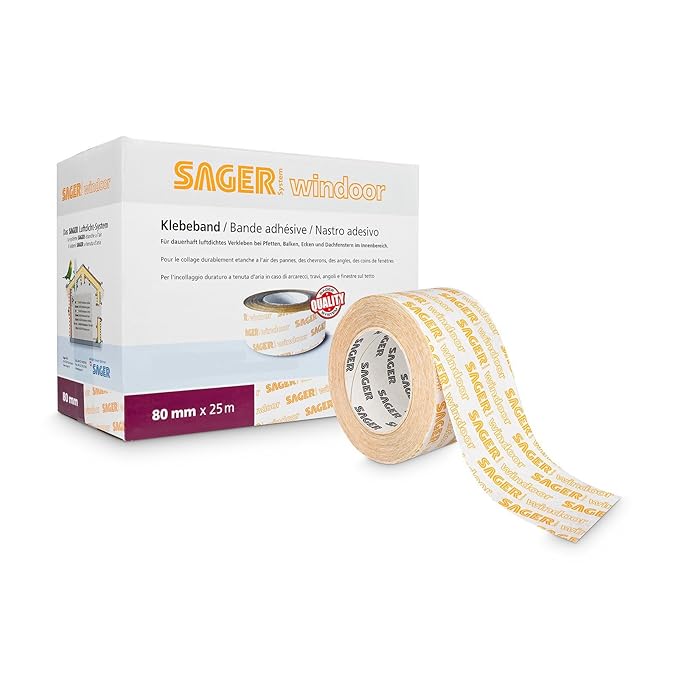 Das Sager Windoor 60mm x 25lfm Hochleistungsklebeband 60mm x 25lfm zur energetischen Abdichtung von Gebäudehüllen im Innenbereich