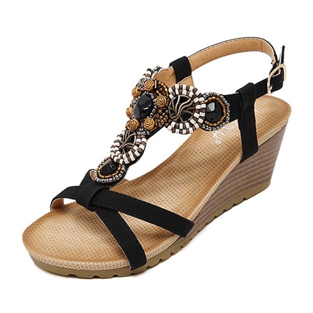 MEIbax Damen Casual Keil Schuhe Gürtelschnalle Absatzschuhe Mode Fisch Mund Sandalen Sommer Keilsandaletten,8.5cm,35-40