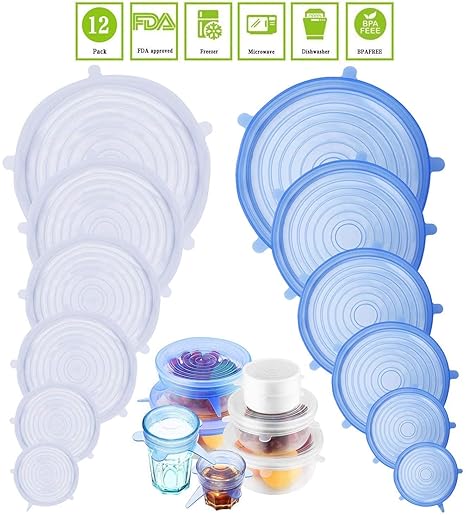 DigHealth Dehnbare Silikondeckel, 12 Teiliges Silikon Stretch Deckel, BPA Free Wiederverwendbar Silikon Abdeckung, Universal