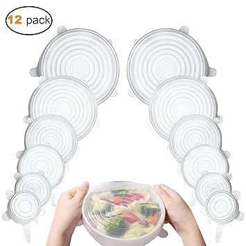 Reastar Dehnbare Silikondeckel 12 Stück Silikondeckel Stretch Silikondeckel Dehnbar in Verschiedenen Größen Wiederverwendbar