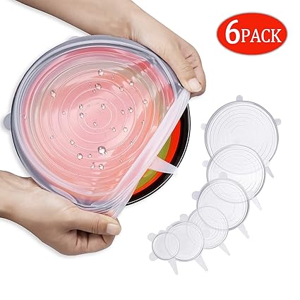 6 Verschiedene Größen für verschiedene Bedürfnisse: Das dehnbare Deckel Set enthält 6 klare Silikondeckeln in verschiedenen Größen. Dank ihres dehnbaren Materials passen die Deckeln problemlos in die meisten Schalen, Töpfe, Behälter, Becher, Tassen, Dosen und Gläser. Sie können sogar Ihre halbgeschnittene Melone oder Wassermelone damit bedecken