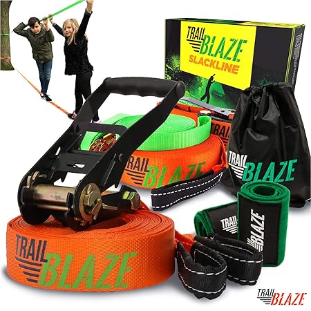 Komplett-Set für Kinder und Erwachsene, Anfänger und Fortgeschrittene Mit Spaß die Balance, Körpergefühl und Haltung verbessern – ideal auch als Ergänzung zum Krafttraining Inklusive Anleitung zur schnellen Installation und Ratsche zum besonders einfachen Spannen Material: Kunstfaser aus Polyester – extrem belastbar und griffig – Länge: 15 m und tragbar bis max. 150 kg Inhalt: 1 Slackline, 1 Hilfsleine, 2 Ratschen, 1x Ratschenschutz, 2 Baumschoner, 1 Aufbewahrungstasche, 1 Übungsposter