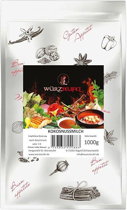 ?HOCHWERTIGES BIOPRODUKT: schonende Herstellung im Sprühtrocknungsverfahren aus frischem Kokosnussfleisch in geprüfter Bio-Qualität. ?VIELSEITIGE VERWENDUNG: feines Kokosnussaroma für Eiweißshakes, Smoothies, Gebäck, Müsli, Desserts oder exotischen Speisen ?PERFEKT ZUM KOCHEN UND BACKEN: Asiatische Spezialitäten, Wok-Gerichte oder Kuchen erhalten ein feines Kokosaroma. ?EINFACHE ZUBEREITUNG: Unser aromatische, fein-cremiges Kokos-Milchpulver ist leicht löslich. Einfach 1Teil Pulver in 3-3,5 Teile Flüssigkeit einrühren und fertig. ?NATURBELASSEN: Wir verzichten auf künstliche Aromen, Geschmacksverstärker, Konservierungs- und Farbstoffe. › Weitere Produktdetails
