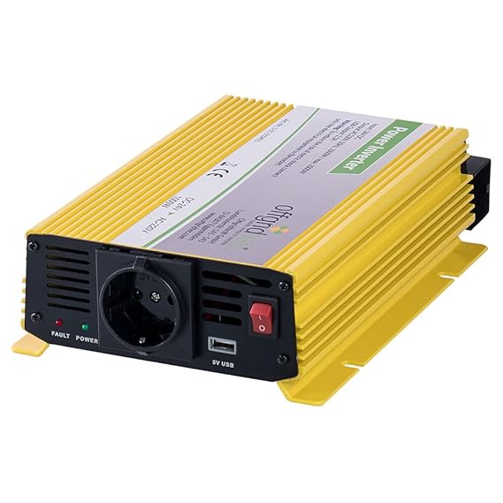 Wechselrichter mit modifizierter Sinusspannung. Dauerleistung: 550 Watt, Spitzenleistung: 1100 Watt Mobile 'Steckdose' für unterwegs Überlastschutz, Kurzschlussschutz, Verpolungsschutz durch austauschbare Sicherungen Auch für Verbraucher mit PFC-Steuerung geeignet Geliefert mit Stecker für 12 V Zigarettenanzünder