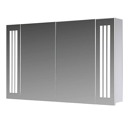 Infrarot Bewegungssensor unter dem Schrank auf der rechten Seite für eine bequeme Bedienung. Dieser Sensorschalter betätigt die Lichter. Der Sensor braucht 15 cm freie Fläche um effektiv zu arbeiten Steckdose (kindersicher) für Rasierer, Zahnbürsten, etc. im Inneren des Schranks, für eine sichere und leichte Handhabung. Die Steckdose hat einen eigenen Ein/Aus-Schalter. Ein Fön kann nicht mit diesem Badezimmerschrank genutzt werden. Das Antibeschlag-Pad ohne sichtbare Kabel liegt in der doppelseitigen Spiegeltür und sorgt für eine beschlagfreie Oberfläche. Die verspiegelte innere Rückwand ist eine einzigartige Besonderheit - Die Rückseite des Schranks besteht aus einer Spiegelplatte die extra Licht und Reflektion bietet Innenlichter, hoch qualitative, sanft schließende Scharniere, gedämpfter Tür-Stopper zum Schutz und zur Geräuschreduktion; verstellbares Regal; hoch qualitative Regalbretter für mehr Sicherheit und eine längere Lebensdauer - Der Rahmen besteht aus gebürstetem Aluminium mit hellgrauer/silberner Oberfläche TÜV geprüft, CE und RoHS zertifiziert, IP44 eingestuft für Zonen 2&3: Alle Armaturen und eine klare Beschreibung sind im Lieferumfang enthalten; umweltfreundlich und energieeffizient; 5 Jahre Gewährleistung und Herstellergarantie, Netzleitung verkabelt; Gehen Sie auf Amazon.co.uk ASIN B00UUBEVCC um Kundenbewertungen zu diesem Produkt zu sehen