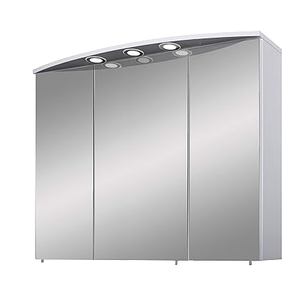 3 Türen mit Spiegel, 6 Einlegeböden und integrierter Aufbauleuchte LED 1,5 Watt, inkl. Konverter, Schalter und Steckdose